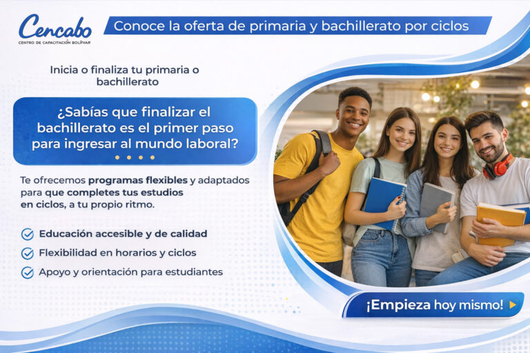 CENCABO ofrece un sistema educativo innovador de Bachillerato Semestralizado por Ciclos, que permite cursar dos grados en un año. Este programa está reglamentado por el Decreto 3011 del Ministerio de Educación Nacional y está dirigido a jóvenes en extraedad (a partir de los 15 años), adultos, empleados y madres cabeza de familia, entre otros. Nuestro modelo promueve el aprendizaje significativo, permitiendo que cada estudiante construya conocimiento y avance según su propio proceso de formación.